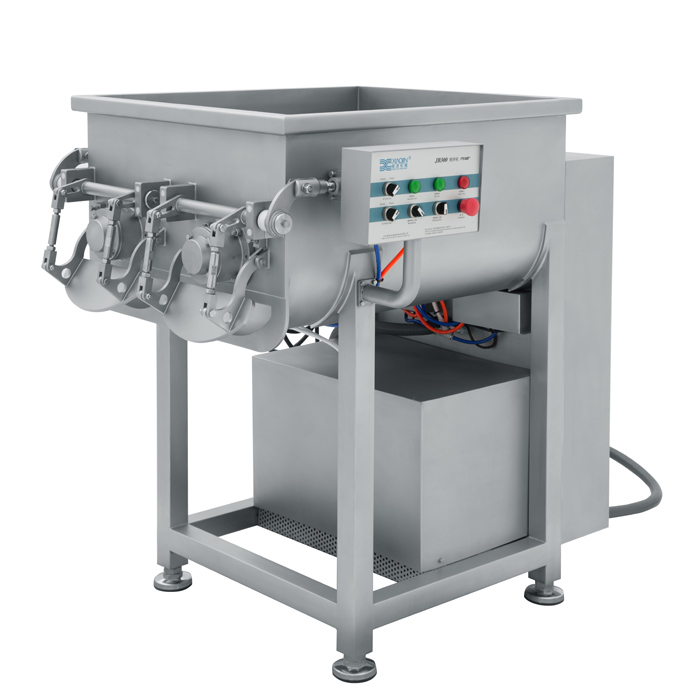我公司生產(chǎn)的食品攪拌機是參照國際同類產(chǎn)品的特點,同時結(jié)合我國肉制品加工工藝特點,自行研制開發(fā)而成的新一代產(chǎn)品。是用于混料的必備設(shè)備,效率高,便于操作,真正實現(xiàn)了物料攪拌的均勻,膨脹充分,彈性好,色澤鮮艷并較大限度地提取蛋白質(zhì)多種功能,適合各種工藝要求,是制作風(fēng)干腸類產(chǎn)品、粒狀、泥狀混合腸類產(chǎn)品、丸類產(chǎn)品的選用設(shè)備。